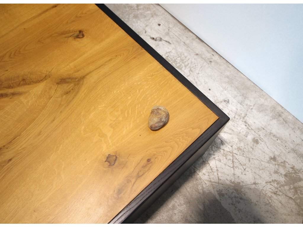 Deska stolu je vyrobená z masivního dubu, boční strany jsou z černě mořeného masivního jasanu a vše je zalakováno polomatným lakem.