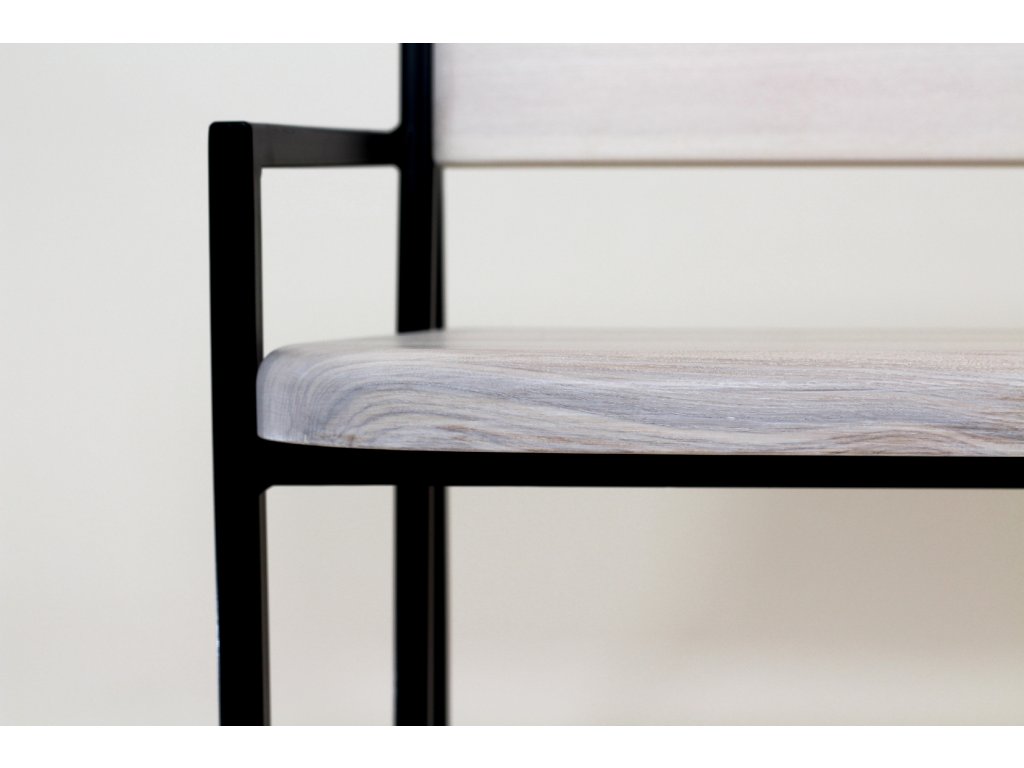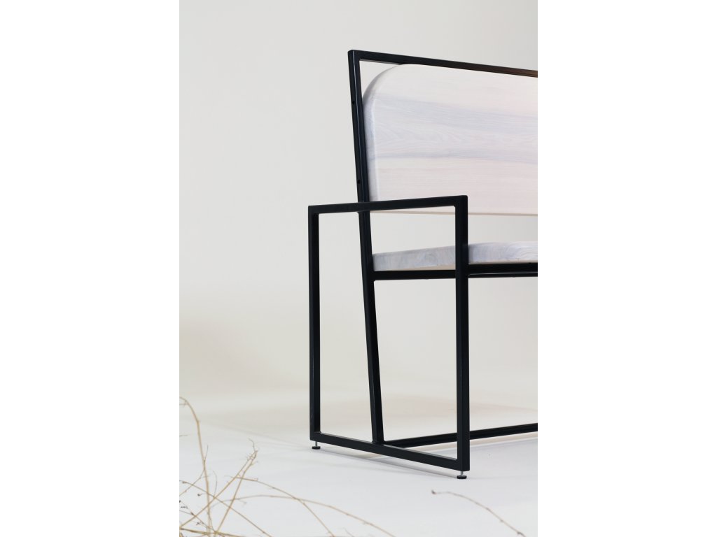 Tato lavice pracuje s propojením kontrastů v podobě černých jasných linek podnože a organických tvarů opěrky a sedáku. Je vyrobená z masivního jasanového dřeva s povrchovou úpravou pigmentovaným akrylovým lakem (pro docílení ledového efektu barvy dřeva) a z kovové podnože v černém matném odstínu.