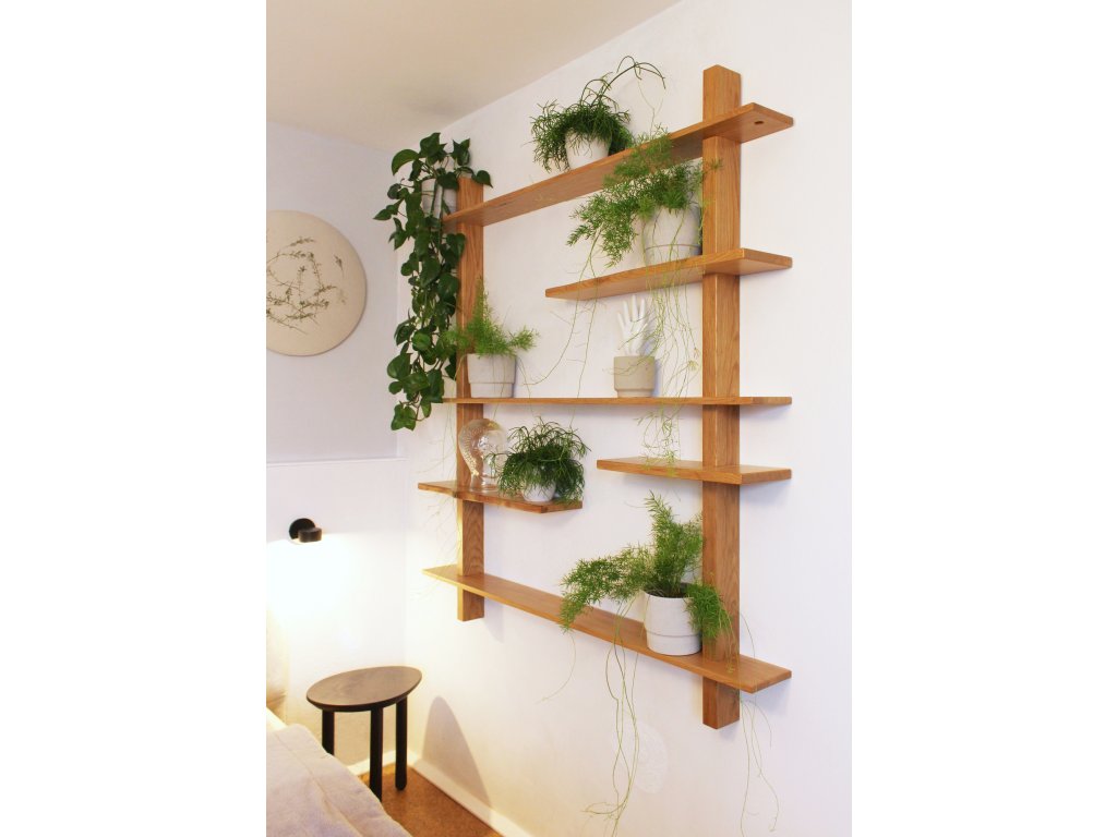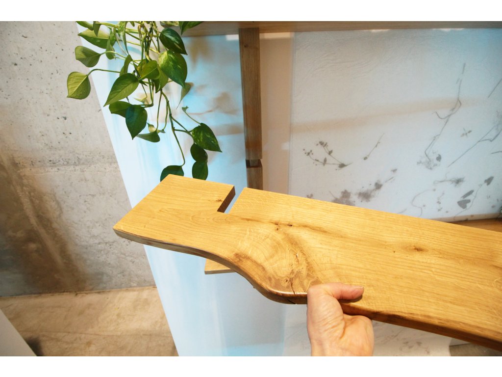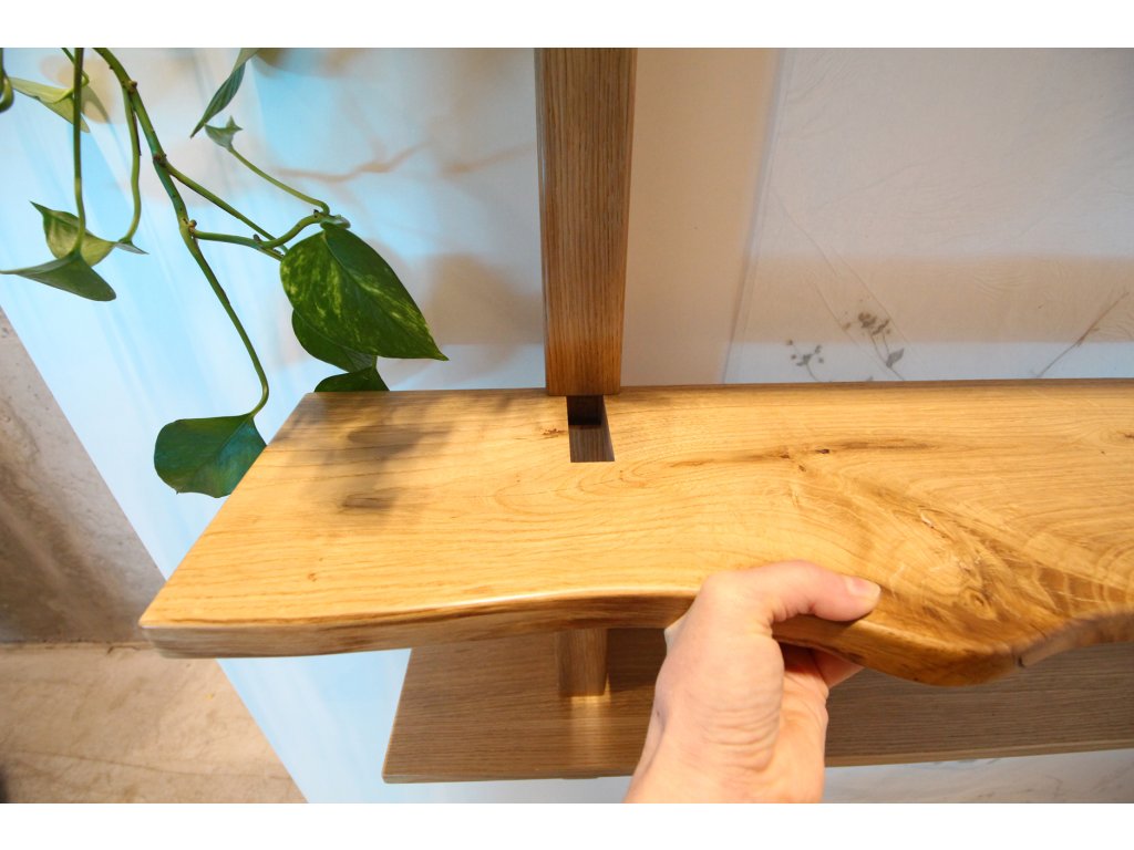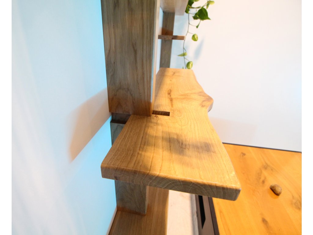 Modulární police ZEN je vyrobená z masivního dubového dřeva, působí odlehčeně, ale je pevná a bytelná. Takže je na vás, jestli se stane knihovnou, rostlinnou stěnou nebo výstavním místem pro všechny vaše oblíbené předměty. Polici tvoří 2 vertikální nosné hranoly a 6 horizontálních poliček. Všechny kratší poličky mají nepravidelný tvar s přiznanými suky a prasklinkami. Chtěli jsme tím ještě více podtrhnout přirozenou krásu dřeva podle principu wabi-sabi. Tyto 3 poličky jsou zároveň variabilně umístitelné, můžete si tak vytvořit jedinečný policový díl podle vašich potřeb. Dlouhé police jsou naopak subtilnější a zcela rovné, celek tak působí jemně a vyváženě.